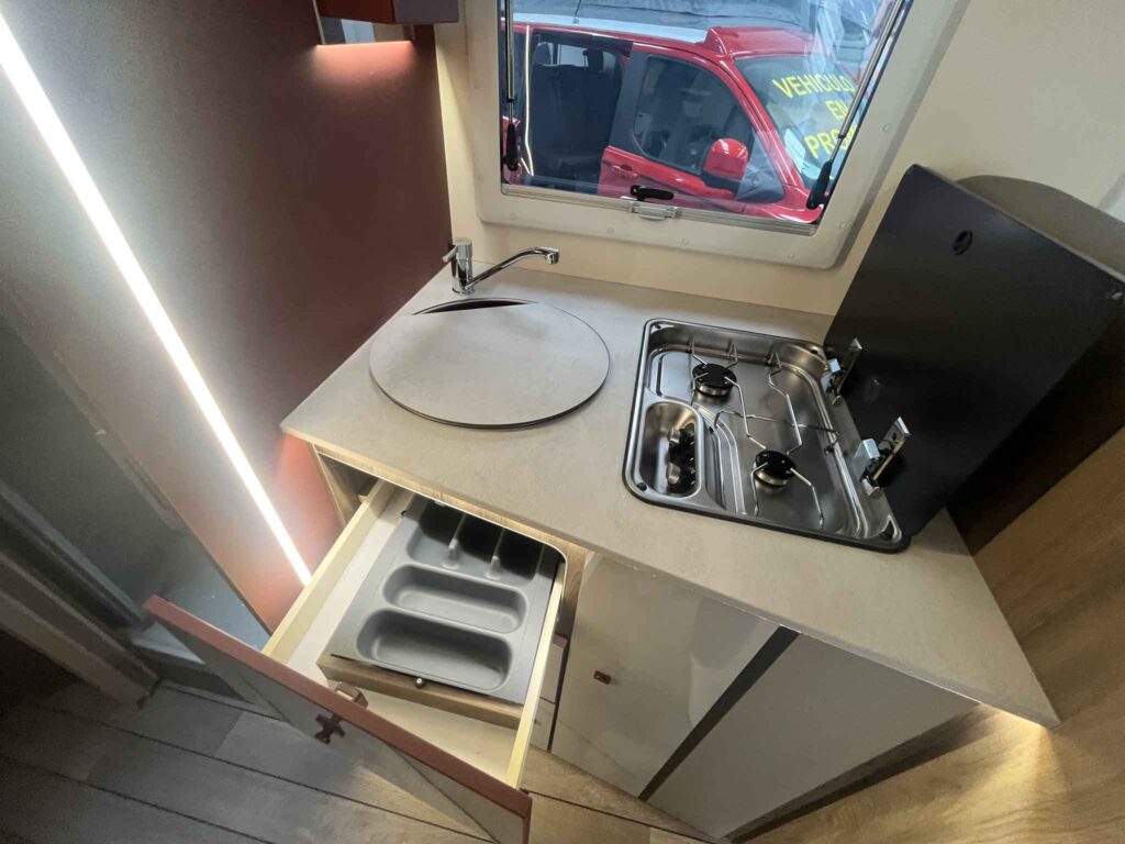 «Carrocería EXPS: Máxima impermeabilidad y aislamiento acústico del habitáculo. Interior paredes y suelo con material plástico resistente al agua
