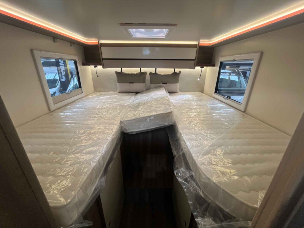 •Grosor suelo: 54 mm •Grosor techo y paredes: 30 mm •Techo exterior de fibra de vidrio •Paredes interiores/exteriores de fibra de vidrio •Zona inferior suelo chasis cubierta en fibra de vidrio»